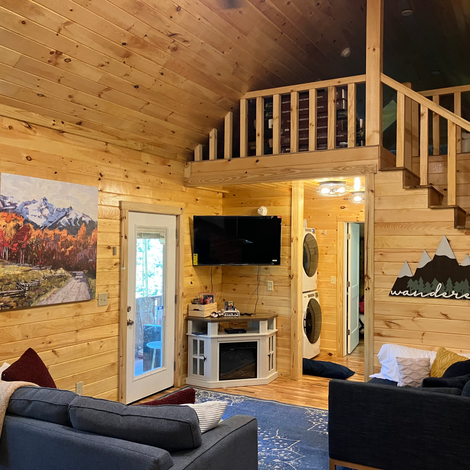 The Lucky Lodge is our newest addition and a new build in a new area! Escape to the heart of the forest and discover our brand new cabin, designed to provide a cozy and rustic retreat for those seeking a peaceful getaway. With a lofted living area, fully equipped kitchen, and bedrooms, it's the perfect place to unwind and reconnect with nature. Book your stay today and experience the beauty of the great outdoors.